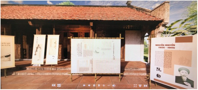 Với mỗi phần, ban tổ chức chọn không gian trưng bày khác nhau, kèm nút chỉ dẫn rõ ràng. Ở phần một, các bức chân dung tác gia được đặt trên sân vườn của một ngôi nhà ba gian, mang nét đặc trưng của thế kỷ 19-20. Các nhân vật đều có thông tin tiểu sử, sáng tác cùng giọng thuyết minh chi tiết. Phần hai đưa người xem đến khung cảnh trường thi xưa, xen kẽ âm thanh gợi liên tưởng đến những vụ xét xử vi phạm trong thi cử. Phần cuối gồm những bài thơ được trưng bày tại bối cảnh Ngọ Môn Huế, kết hợp âm thanh du dương, tái hiện đời sống văn chương của cung đình.